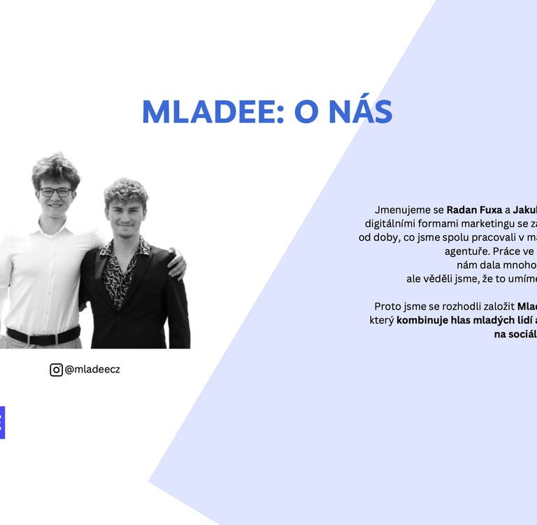 Naše vášeň pro kreativitu a inovaci nás dovedla k založení Mladee. Publikum na sociálních sítích už nechce monotónní reklamy, nudné grafické manuály ani šablonovité příspěvky – chce lidskost a chce emoce. Chce akci, humor a překvapení.